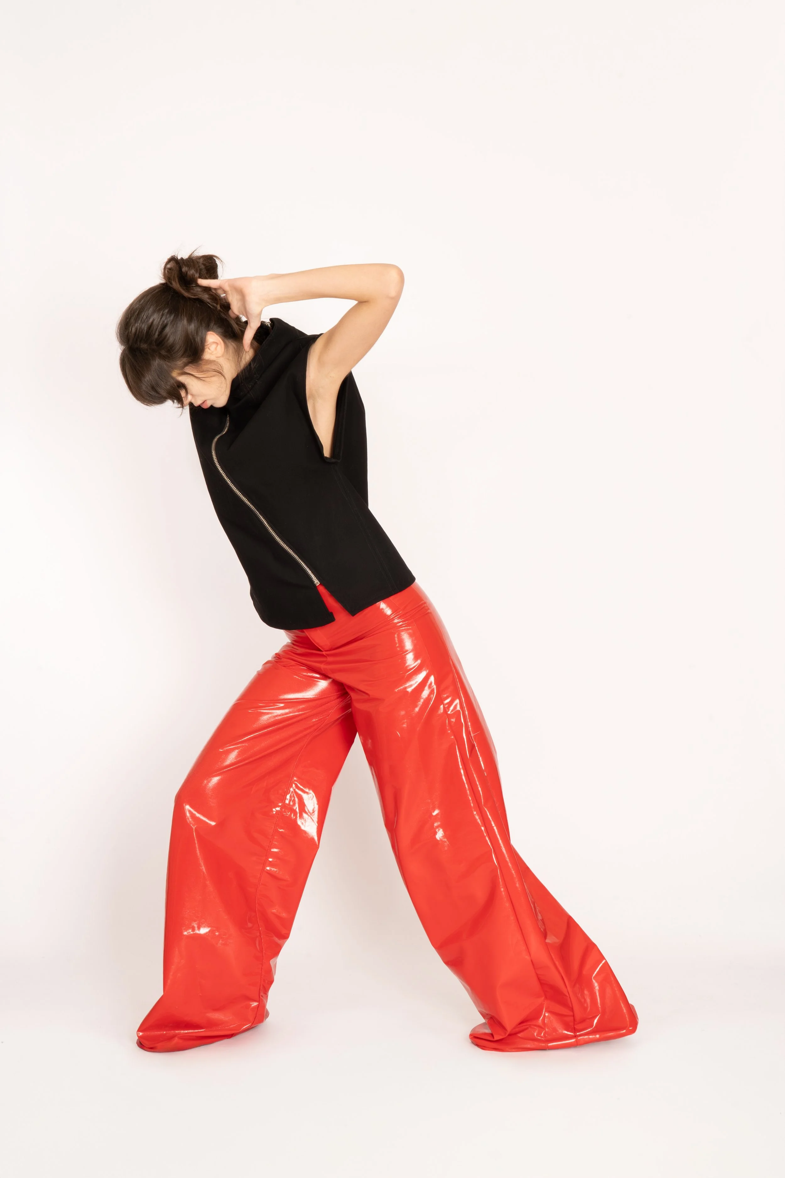 Durant plus d’un an, ma réflexion s’est énormément portée sur une obsession profonde pour la forme triangulaire, des lignes inhabituelles et tombés absurdes. Une obsession presque perverse qui hante chacun de mes sommeils. J’ai décidé d’en créer mes propres patrons, ma propre réflexion et une signification porteuse de sens. Chacune de ces pièces « TRIA » réunit un point central qui dicte notre vie commune sur Terre. Chaque chemin est différent, mais mène toujours à ce même point d’équilibre.