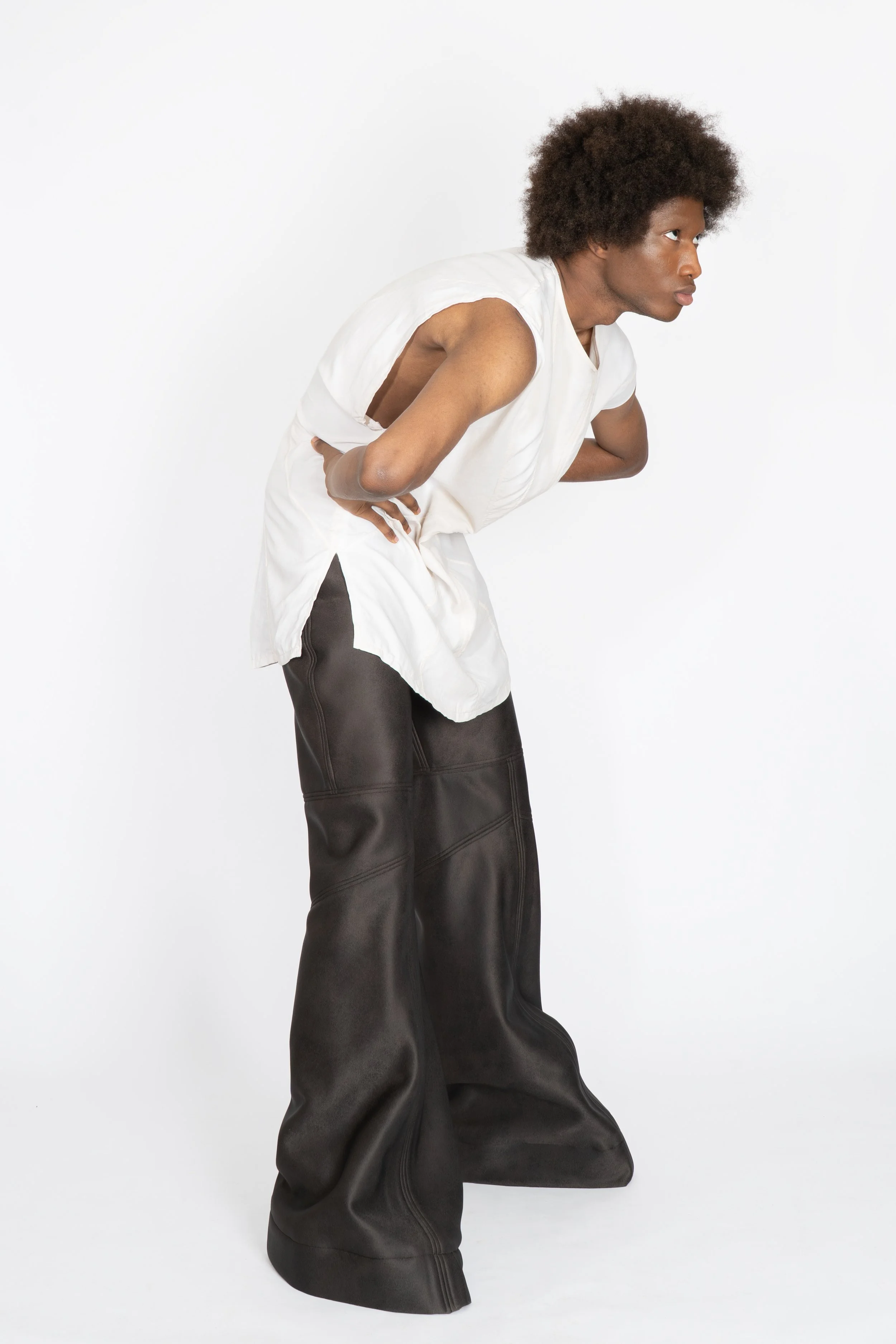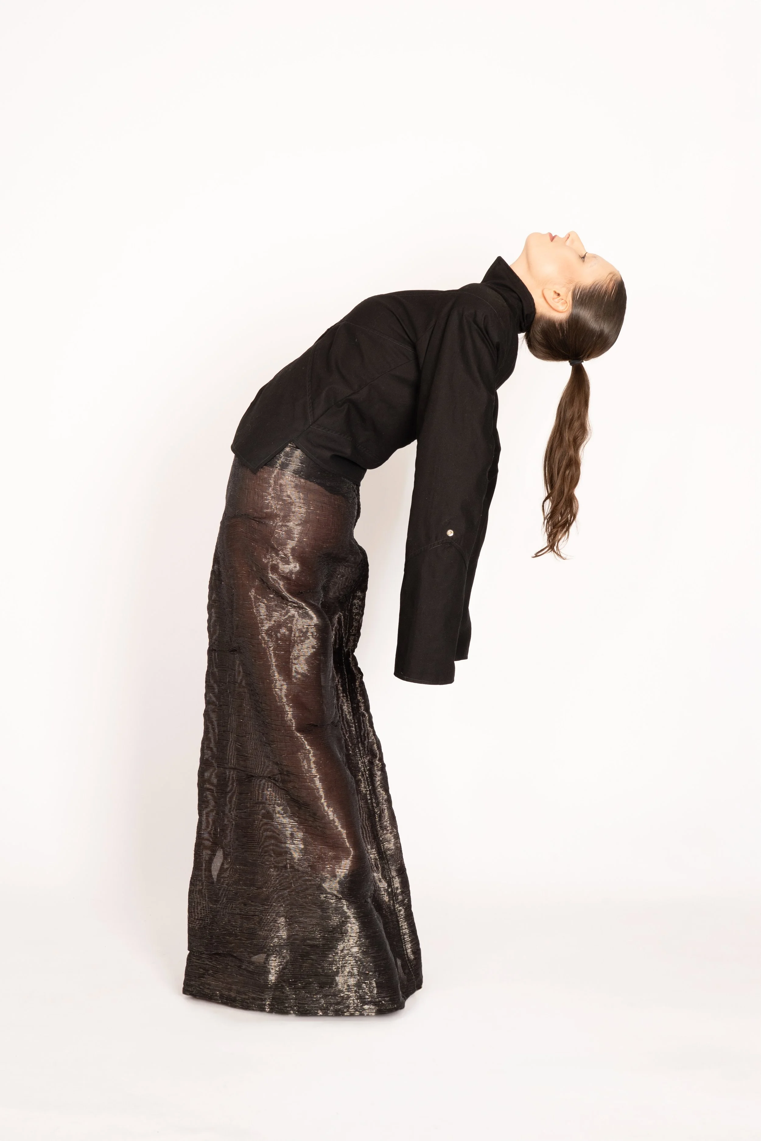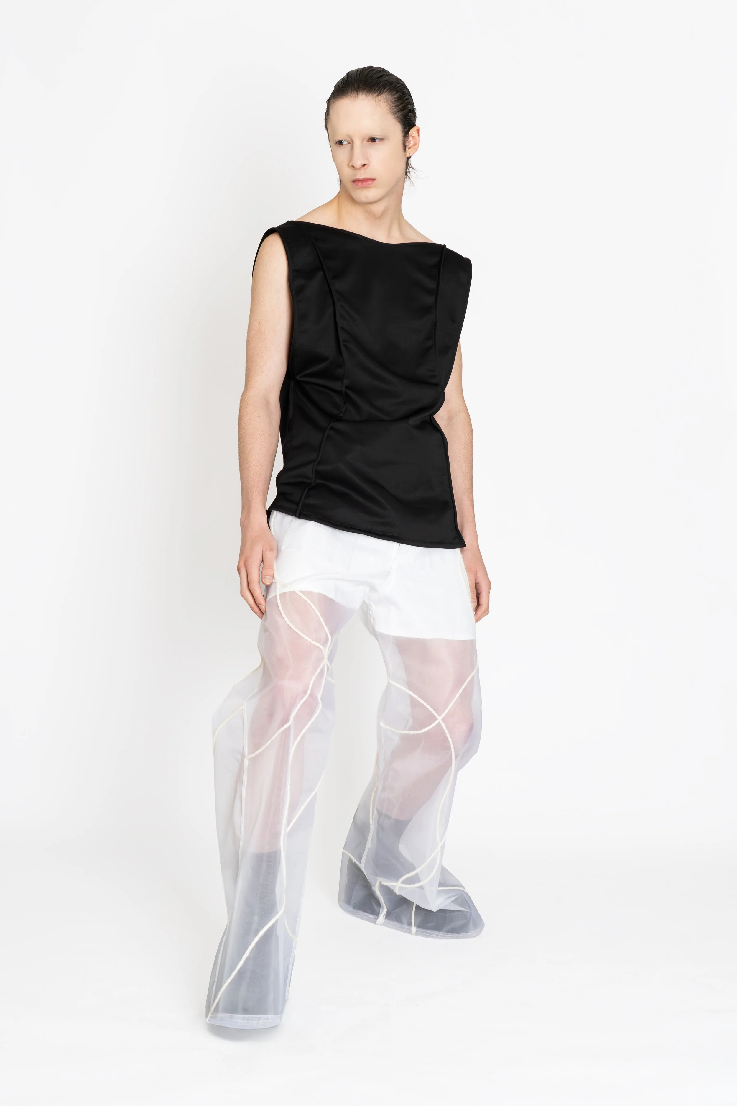 Dans cette logique, la collection est aussi une réflexion autour des silhouettes que j’admire dans ma vision : le travail du moulage, les formes « aliénées », presque alien. Créer, imaginer ma propre silhouette, comme convertir une population à une religion de liberté. J’apprécie inviter le public à l’appel de la différence et de l’acceptation de soi. Il est très important pour moi que nous ne rentrions pas dans des cases, afin de ne pas créer mutuellement nos fantasmes à travers le regard des autres.