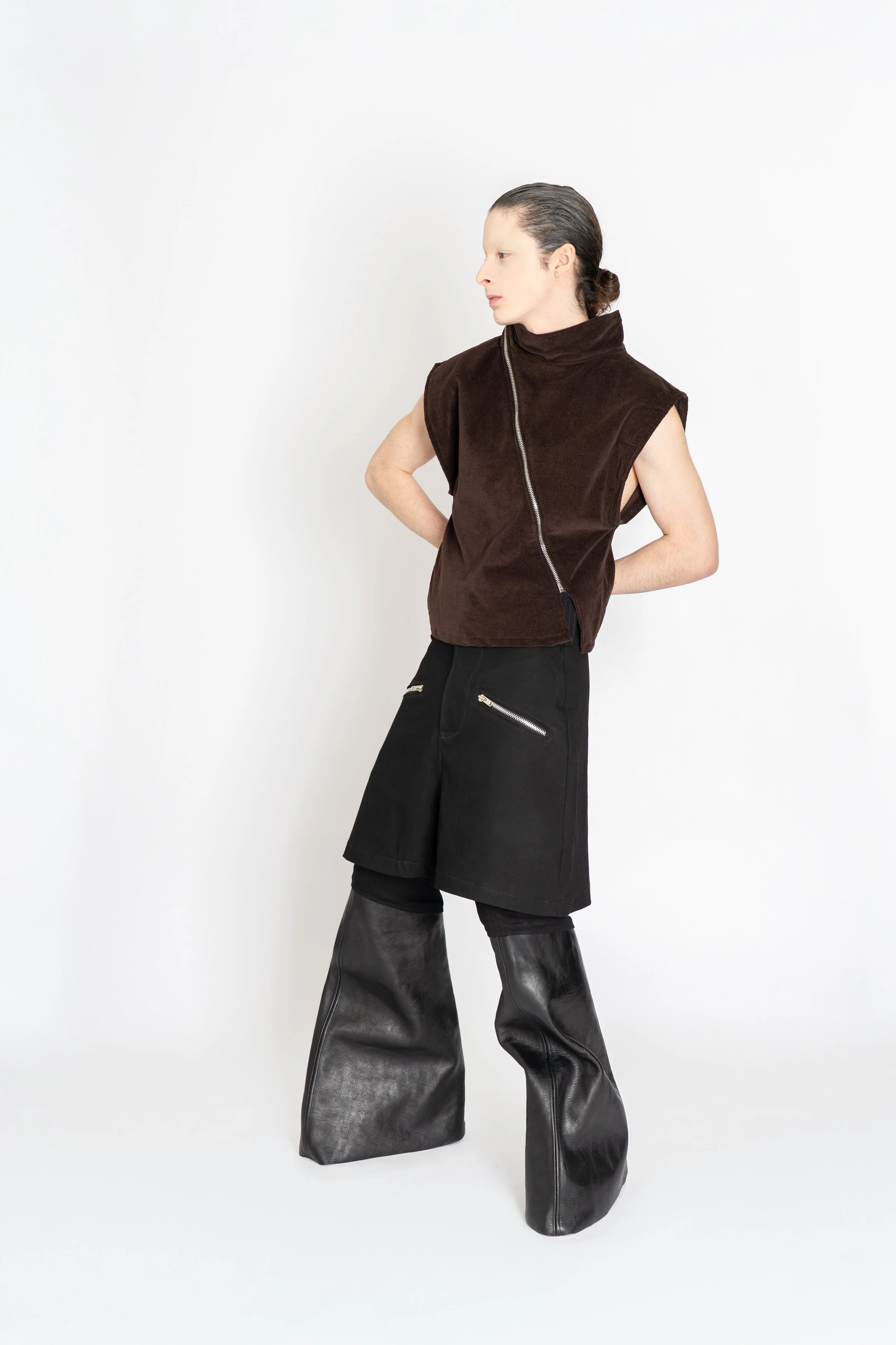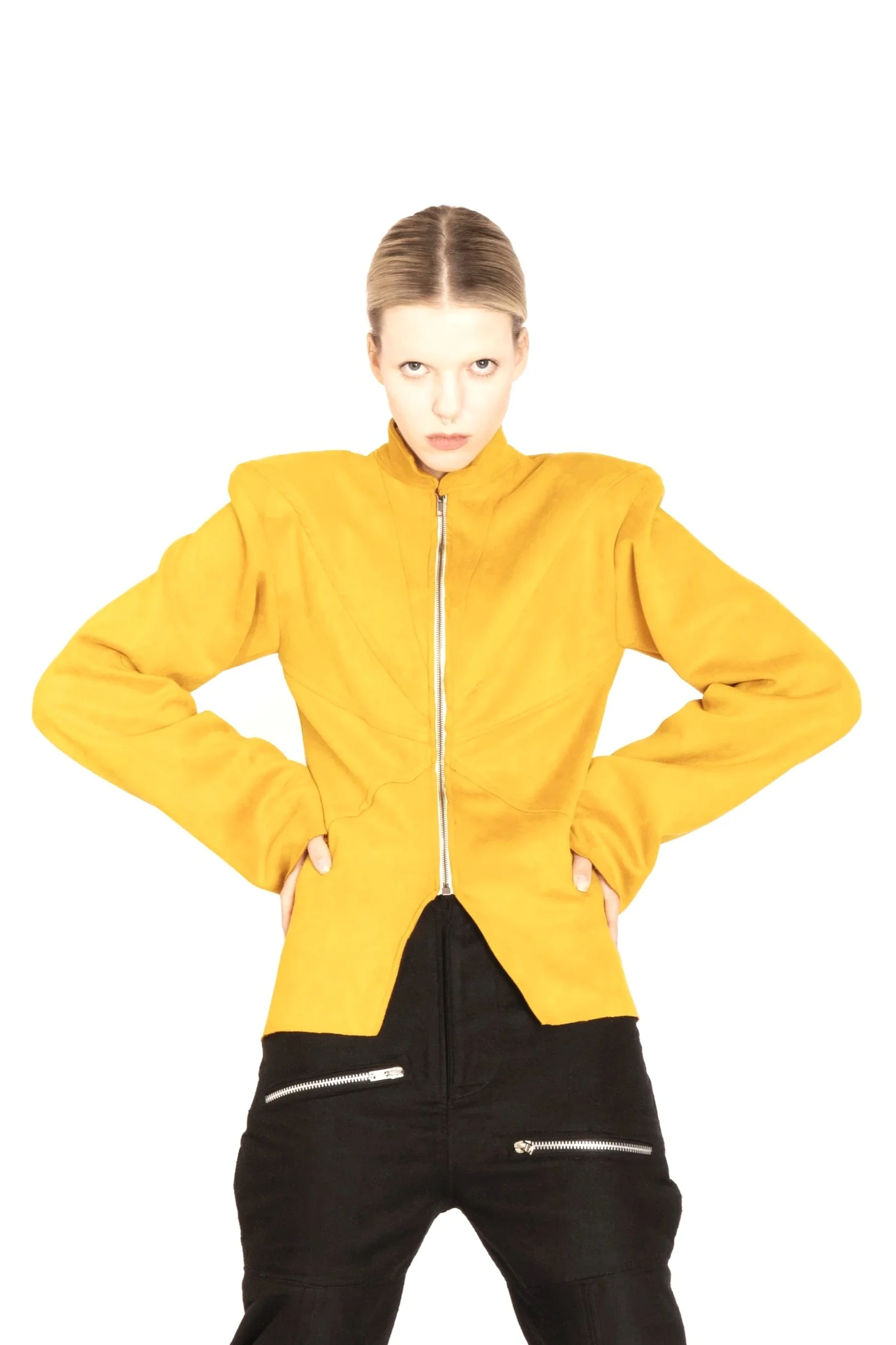 La définition de cette collection se base sur mon obsession pour les formes triangulaires et l’impact qu’elles donnent à mon art. Après GAÏA, mon seul objectif était de perpétuer cette recherche personnelle : casser, transformer et apporter ma propre définition du vêtement. Essayer de revenir à son essentiel.
